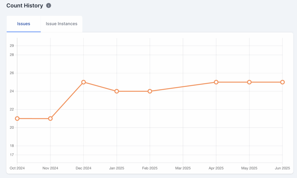 A simple line chart component that visualizes the number of accessibility issues over time to help track progress or trends.