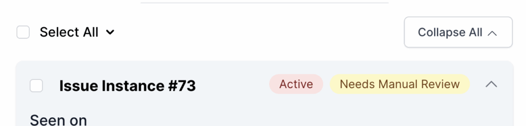 Filter issues by whether they Need Manual Review or not, these instances need to be checked to confirm if any action or fixes are needed.