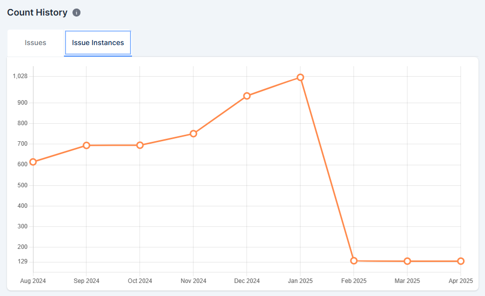 Another tab with issue instances can be viewed, showing issue instances scanned over time.