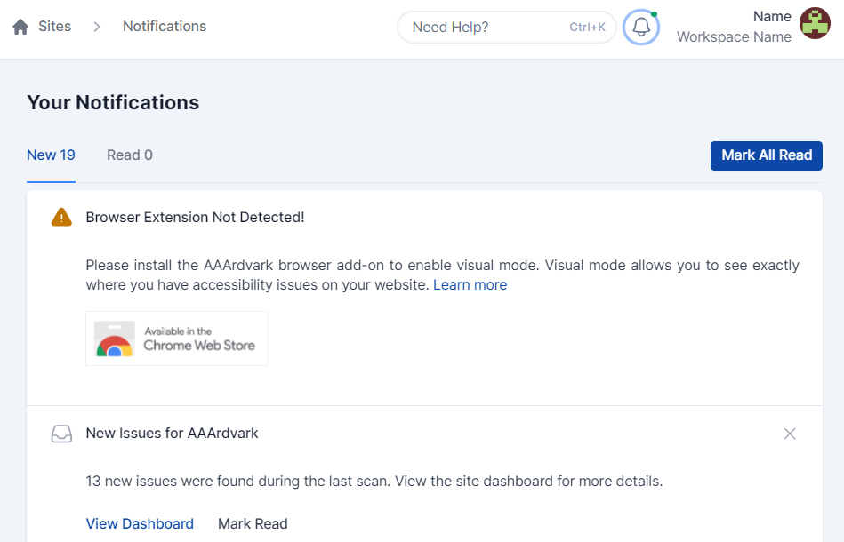 Access your AAArdvark dashboard by logging into your account. The dashboard is your central hub for managing workspaces, sites, scans, teams, and account details. Let’s explore how to navigate and make the most of it.