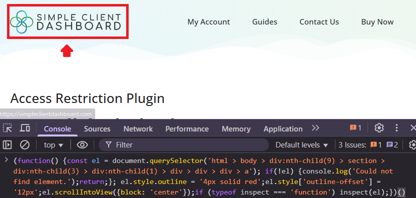 You’ll use the snippet in a separate browser window where you’re viewing the page of your website where the accessibility issue is happening. You’ll use the browser console to locate the element.
