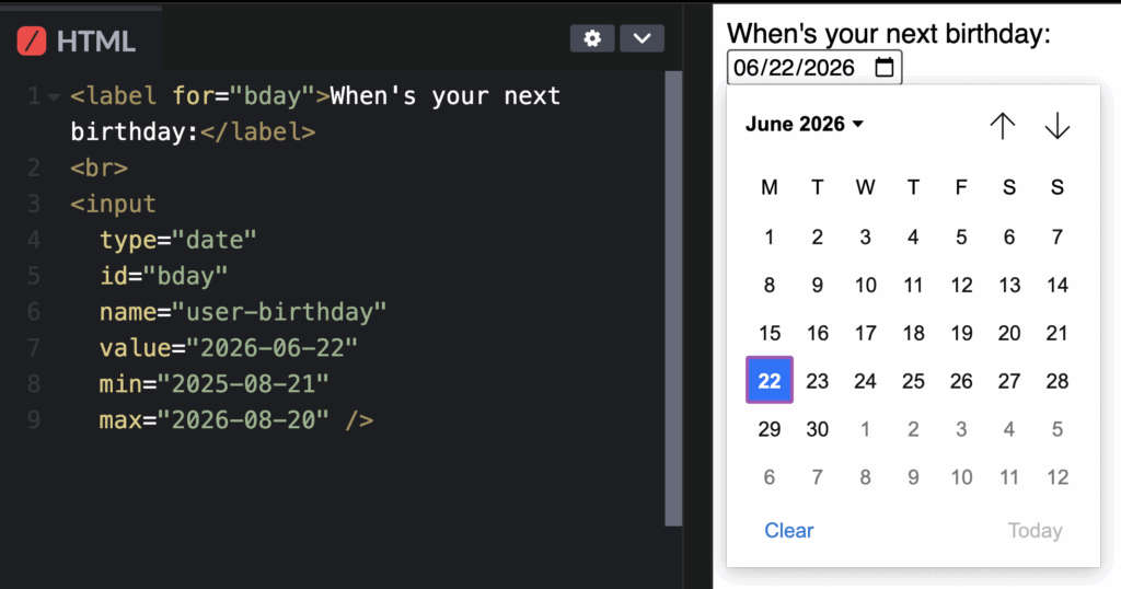 Whenever you can, you wanna try to do that, and HTML has gotten to be a lot more robust, a lot more powerful than it used to be. So we have a lot more options. Like you can build now native date pickers and time pickers, for example. You do not have to code that all up in JavaScript.