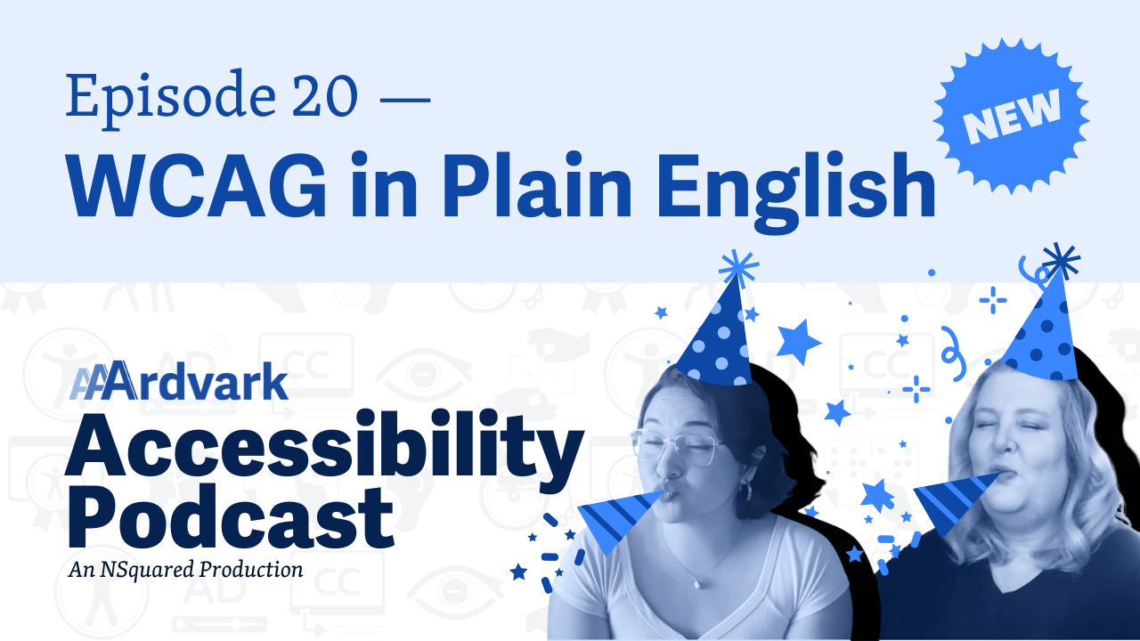 Join co-hosts Natalie Garza and accessibility expert Natalie MacLees in the 20th episode of the AAArdvark Accessibility Podcast. They discuss their latest project, WCAG in Plain English, a collection of simplified articles derived from the official WCAG guidelines.