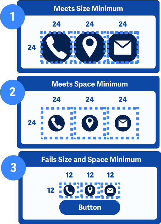 Even if an element is smaller than 24 x 24 pixels, it can still pass as long as there’s enough space between it and other clickable elements. But it’s always a good idea to make them bigger for easier use.