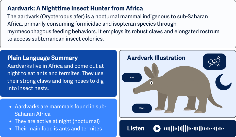 Content that’s written at a high reading level needs to include a simpler, easier-to-understand version. This could mean rewriting it with easier words, offering a summary, or using visuals or audio to explain the same info in a clearer way.