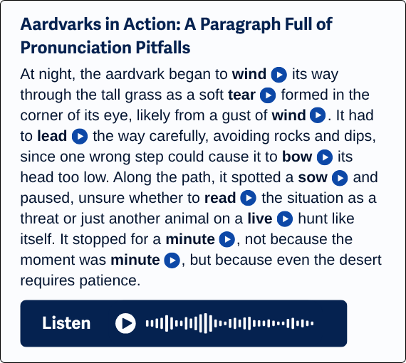 When pronunciation changes meaning, don’t leave users guessing. A quick tip, sound clip, or visual cue can go a long way in making sure your content is clear, especially for people using assistive tech or learning your language.