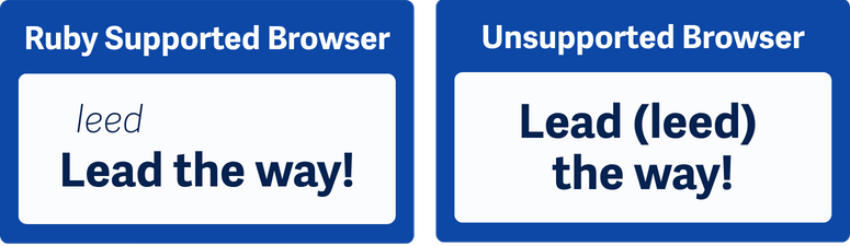The output would then look like this, where the pronunciation information is shown above or below the word it's annotating. Or, if the <ruby> markup is not supported on the browser, it will use the fallback parentheses.